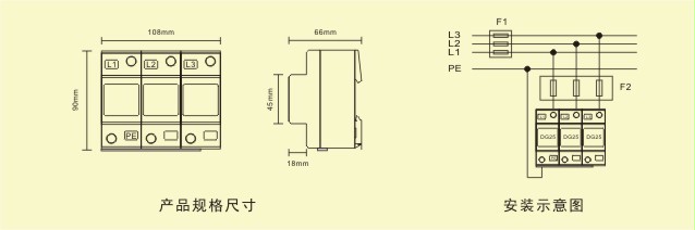 ◆ 安装在三相交流电源线路上,用于电源线路第一级防雷及抗浪涌保护;