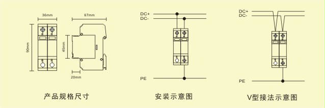 ◆ 安装在直流电源线路上,用于直流电源线路防雷及抗浪涌保护;