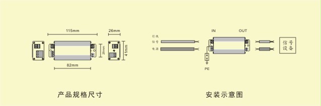 用于220V电源与5V信号设备防雷 |