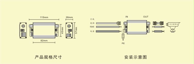 ◆ 安装在动点摄像枪端,用于电源、信号线路防雷及抗浪涌保护,满足动点摄像枪防雷保护及电气特性要求;